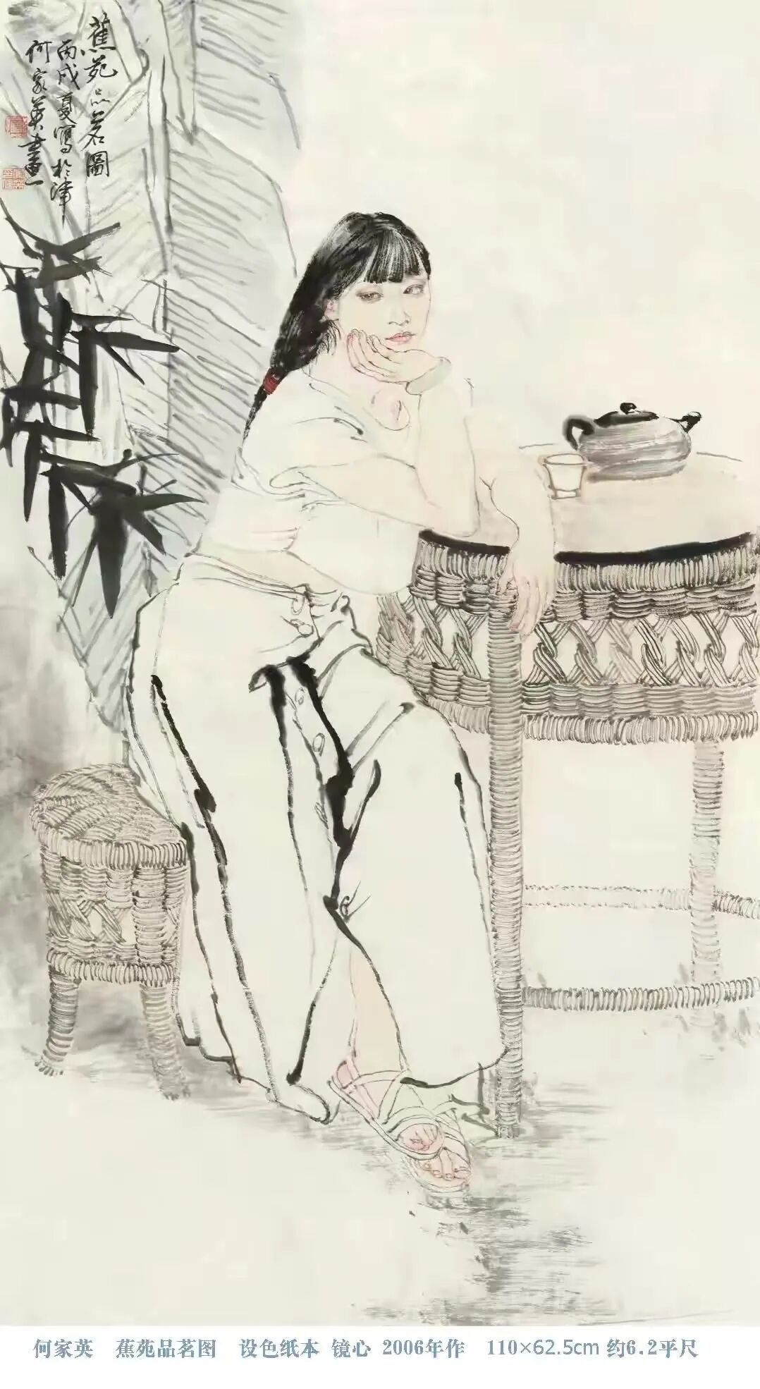 何家英说过,他看东西比较全面,中国的、西方的、日本的、印度的、现代的、古典的他都曾研究过,这样才练就了一双慧眼,能从大自然中处处感到诗情画意,从而创作出一系列如此超凡脱俗又灵气逼人的女性人物形象!