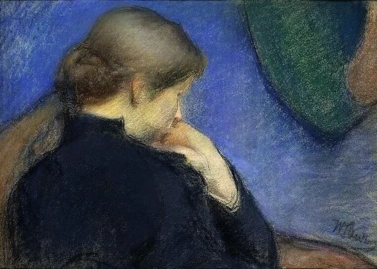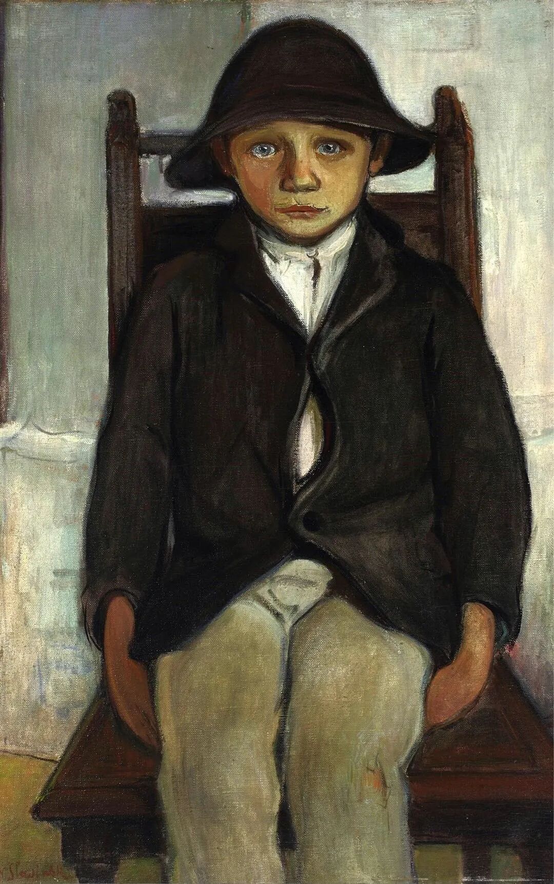 第三幅那名孤独地坐在椅子上的小男孩,大大的眼睛里的孤独无助,令观者禁不住伤感和落泪!而其实更像画家自己,他母亲在他出生时因为大出血就去世了,他父亲因参加革命被流放送往西伯利亚,他从一出生主要由他的祖母照顾。
