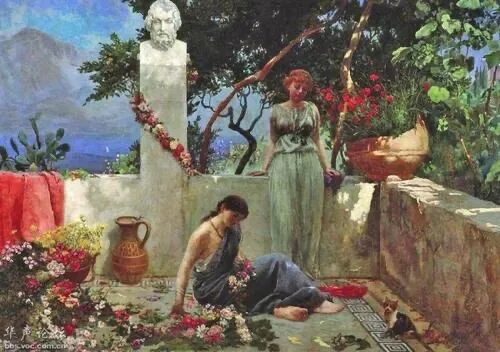 春光明媚,一男一女在井边谈情说爱,世俗男女的爱情在这幅画中得到了最好的诠释,大家可以想象一下,她们到底在演绎怎样的爱情故事……