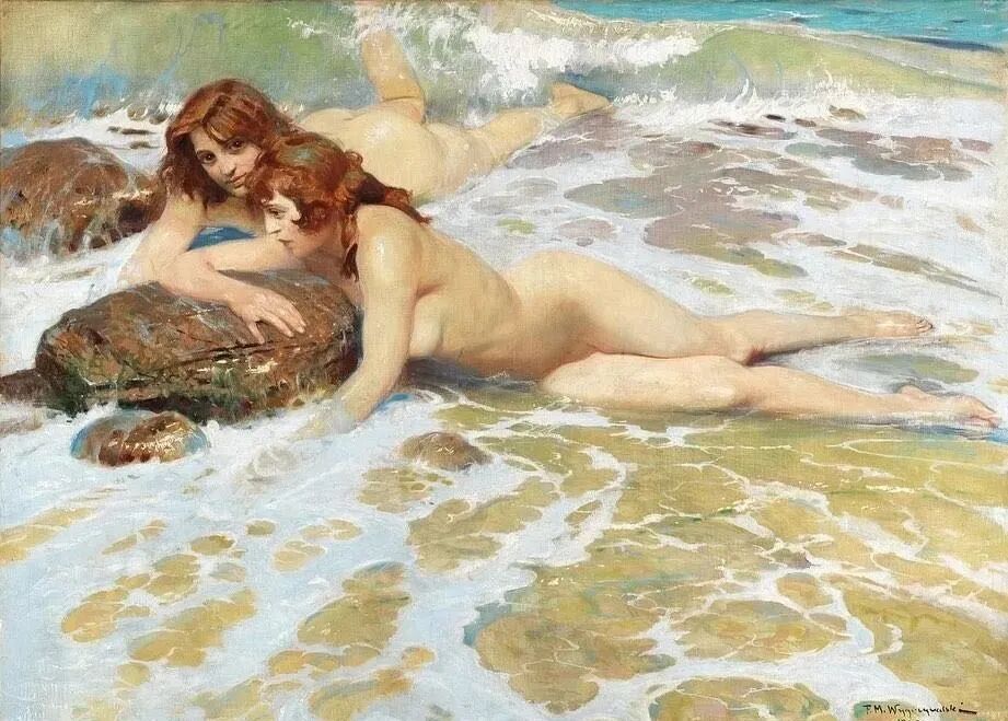 菲利克斯·瓦格茨瓦尔斯基,也是一名波兰画家,他的作品中也同样耐人寻味,如这幅《爱如潮水》!