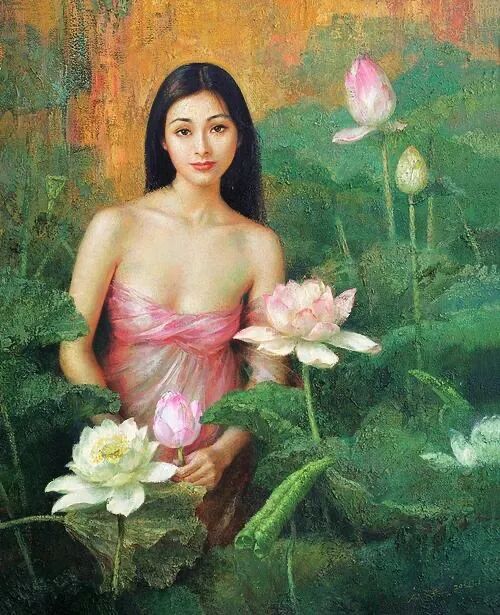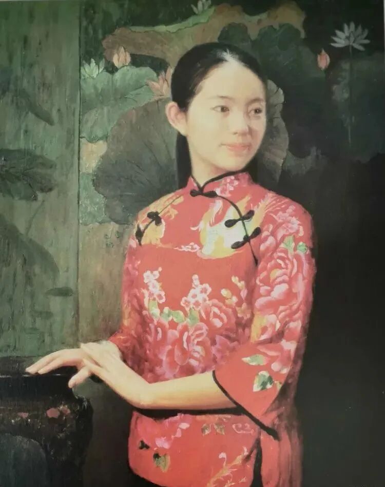 陈连军油画《出水芙蓉》,这是中国标准的古典旗袍美人,娴静端庄,委婉如贤妻良母!