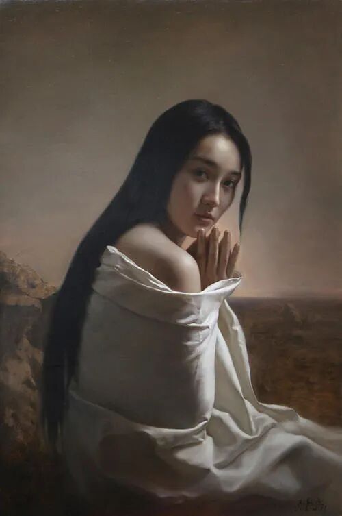 在美校学习的时候,王能俊最关心的是如何用油画的写实语言展现出一个人的精气神。所以在后来创作的日子里,人物的“精气神”贯穿了他的每一幅肖像画,其笔下的女子,充满展示了东方女性的气质美,画面唯美,清新甜美淡雅脱俗!