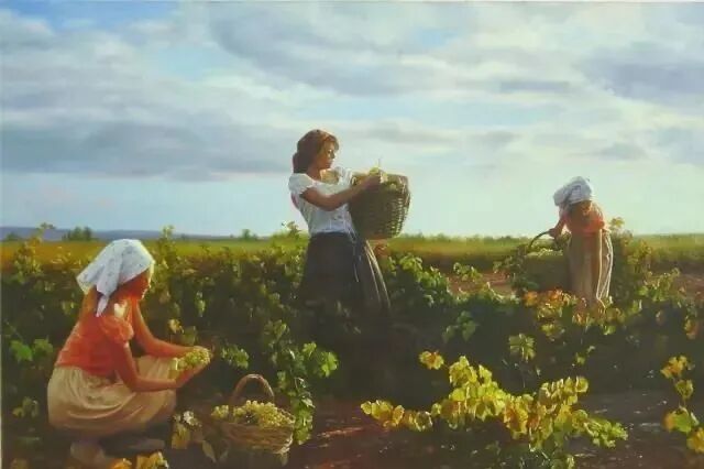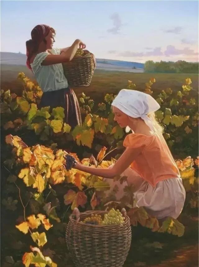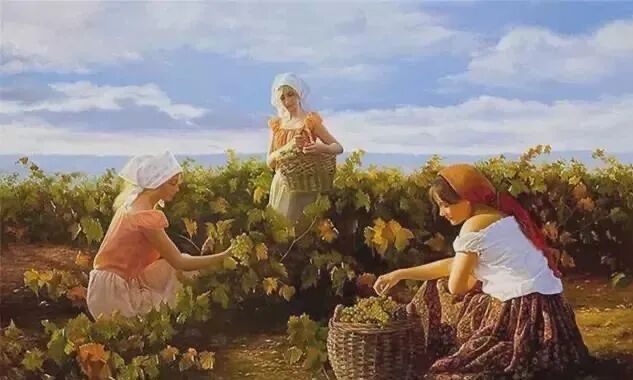 费尔南多的很多作品,都描绘了西班牙葡萄园收获的季节,那些采摘葡萄的美丽女子和大自然风光!