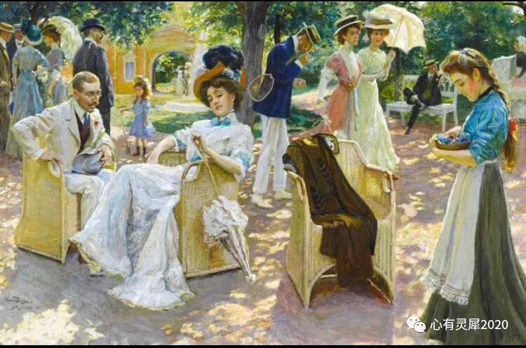 树荫婆娑起舞,男男女女出游闲聊散步,喝茶聊天,多么美好的一天……