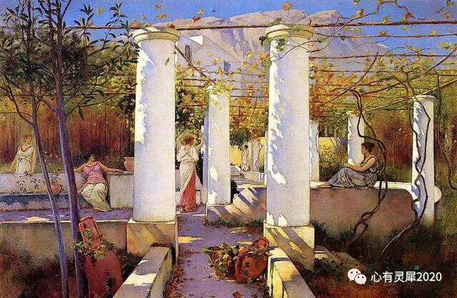 卡普里在树荫下,斑驳的树影摇曳多姿,蓝天下是那么宁静美好,难怪画家最终会定居在此地!