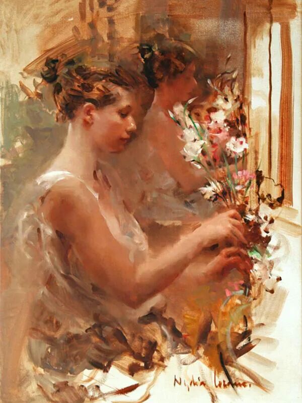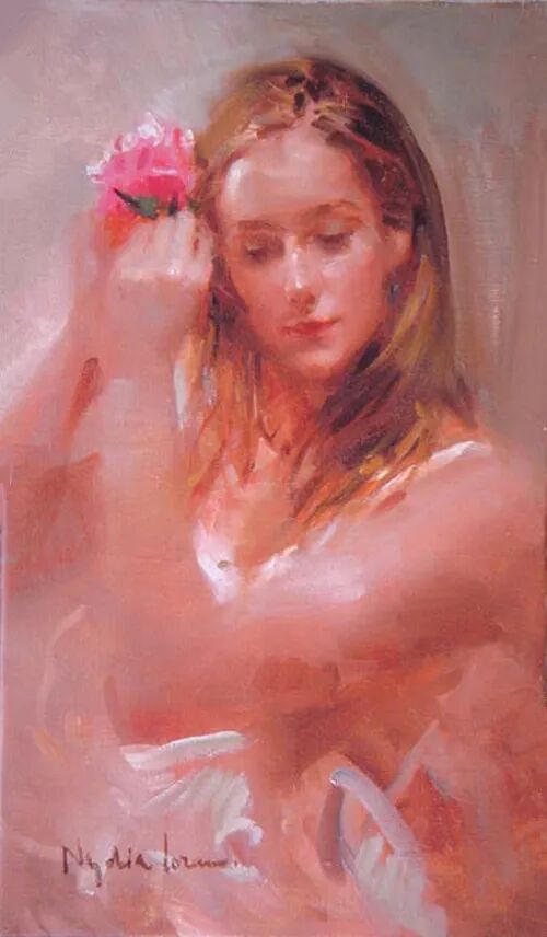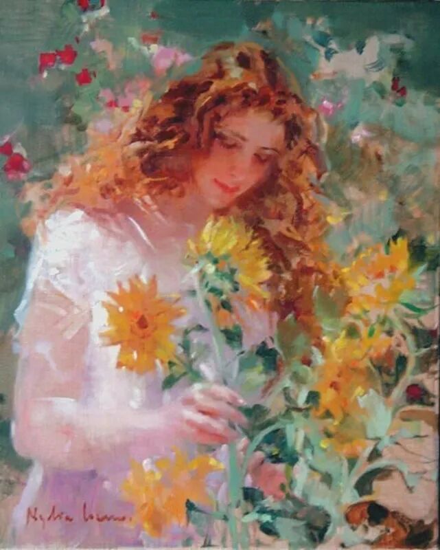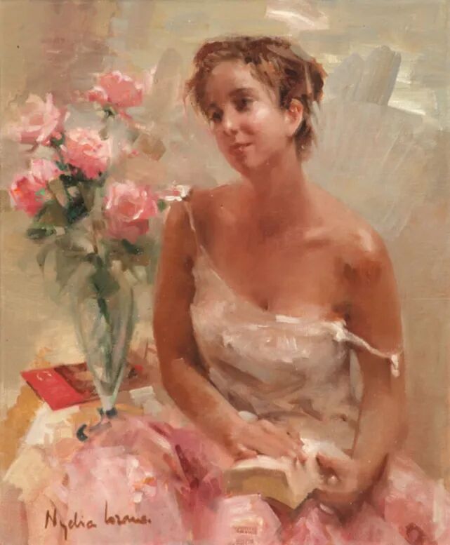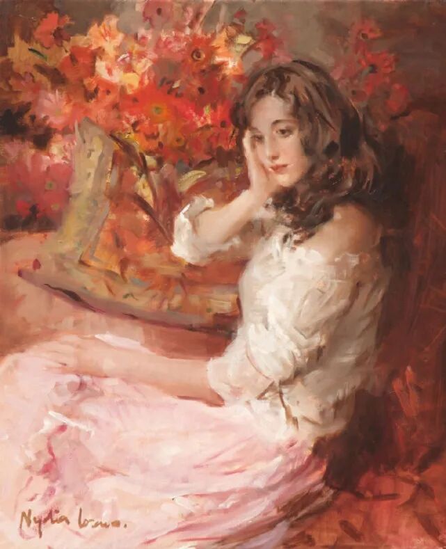 因而在尼迪亚成为职业画家之后,瓦伦西亚美好的自然景观给了她源源不断的创作灵感,其笔下的女性大部分总是和五彩缤纷的鲜花为伴,女性们每天的生活,就如同鲜花一样,努力绽放着自己的激情,多姿多彩,诗情画意,幸福而快乐!