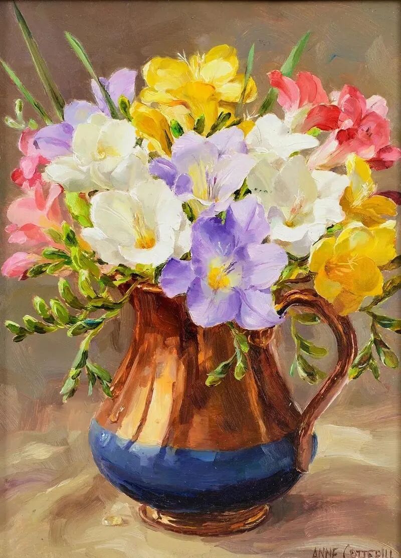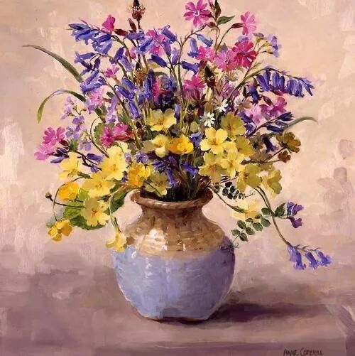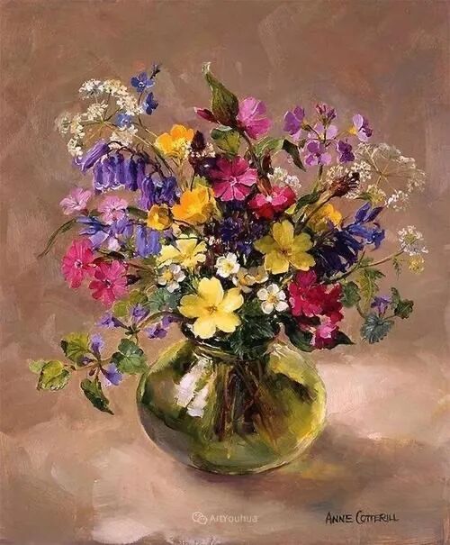 今天带大家来到春天的花园里,欣赏英国女画家安妮·科特里尔笔下姹紫嫣红的花花草草世界!多与花草融为一体,你也会变成一朵绽放的花朵!
