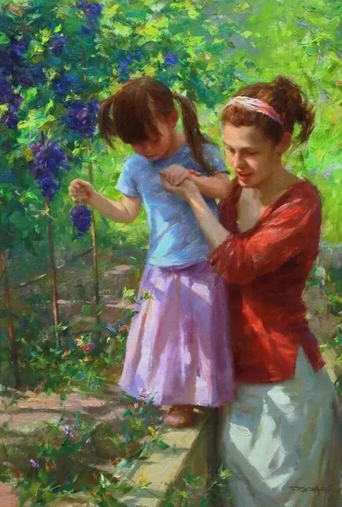 罗梅尔笔下刻画的女性、孩子以及静物等,风格流畅,光线明亮,色彩鲜艳,笔触构图技巧恰到好处,因而吸引了很多观者的眼球!