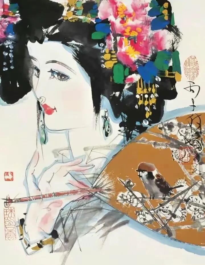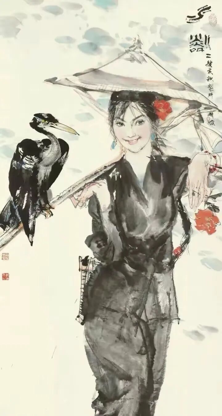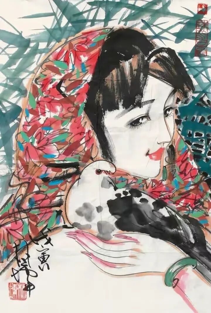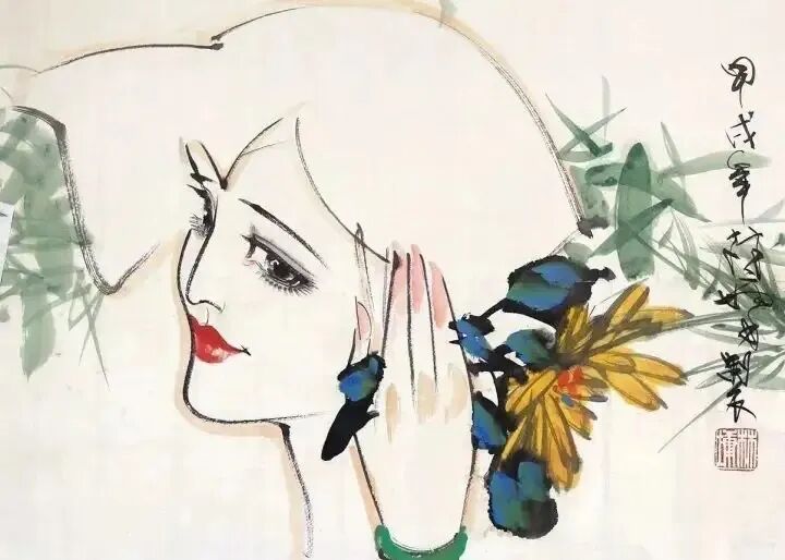 很多收藏家、买画者最喜欢买他笔下的美女,总是有一股灵气,妖娆妩媚,有时感觉就像是金庸笔下的那个俏皮的古灵精怪的黄蓉!