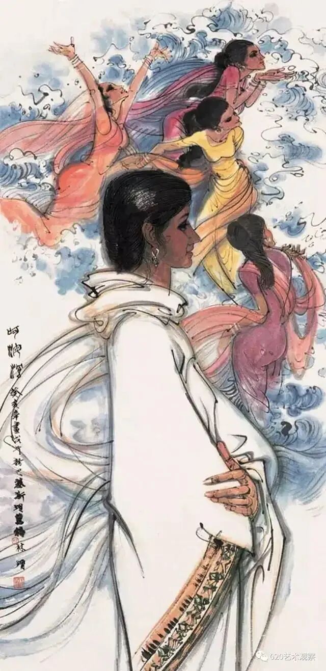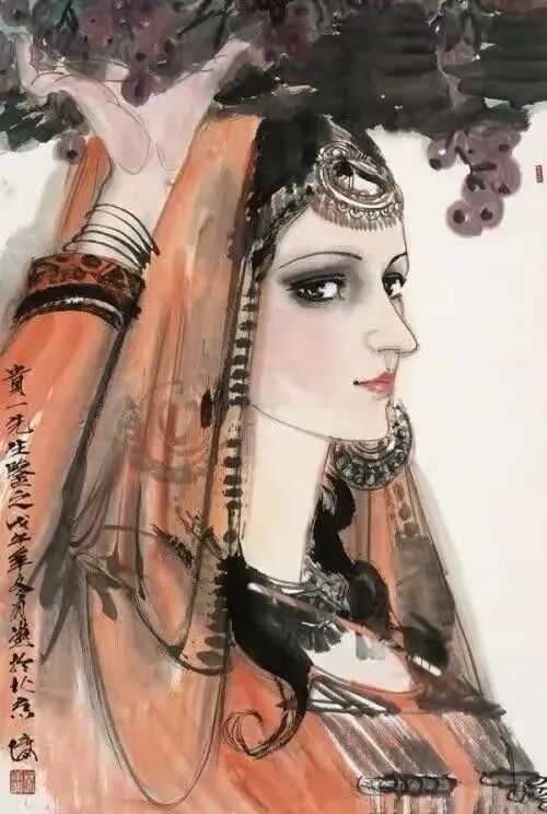而林庸的绘画技法又是变化多端的,所描绘的女性也是多变的,有古代仕女图,有现代女性,也有印度巴基斯坦美女!