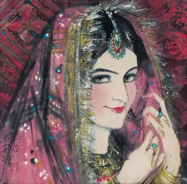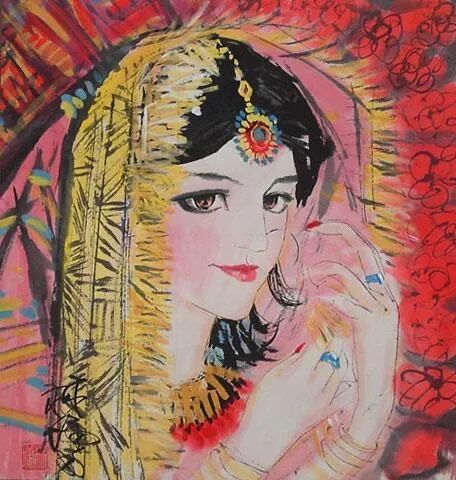 70年代末他因工作原因多次前往巴基斯坦,在这异国的土地上点燃了他的创作热情!他笔下的印度女郎,实在是太有异域风情了!