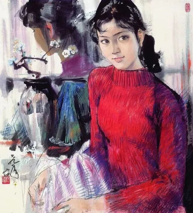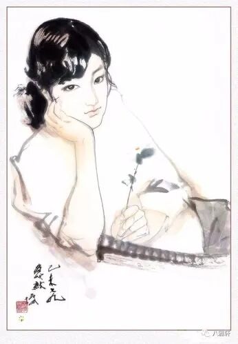 林墉画美人喜欢画侧脸,突出一只眼睛,这样的留白,似乎是犹抱琵琶半遮面,给观者留下了无限想象的空间!