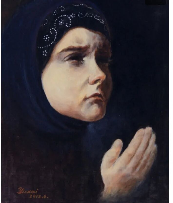 这幅取名《做祈祷的阿拉伯女孩》,足可以说明一切!画面的女孩正在做祈祷,可是脸已经扭曲变形,过分的虔诚并非是一桩好事!
