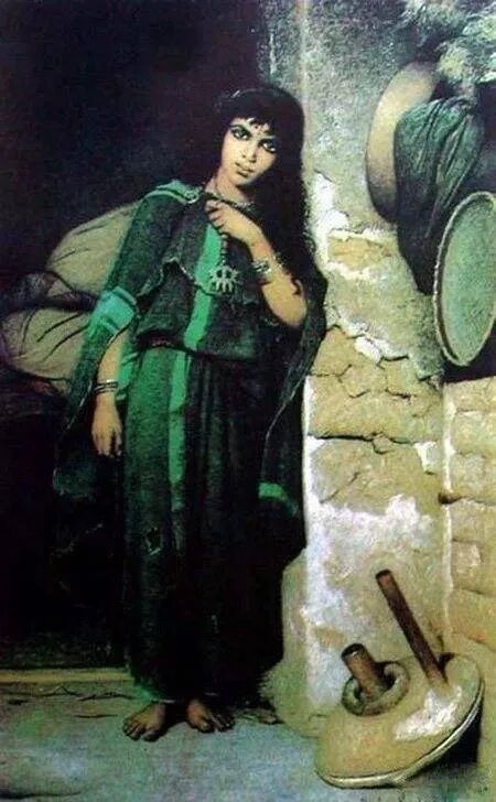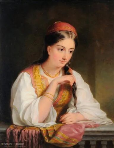 作家夏尔·朗代尔—加拿大著名画家所创作的《阿拉伯姑娘》,即使是穿着朴素的衣服,赤裸着双脚,从肩上背着的包裹,感觉似乎是一位流浪的少女,正倚靠在陈旧的门框上!但她的大眼睛,却闪着钻石一样的光芒,让观者觉得苦难并没有改变她压垮她,反而被打造得越来越美了!