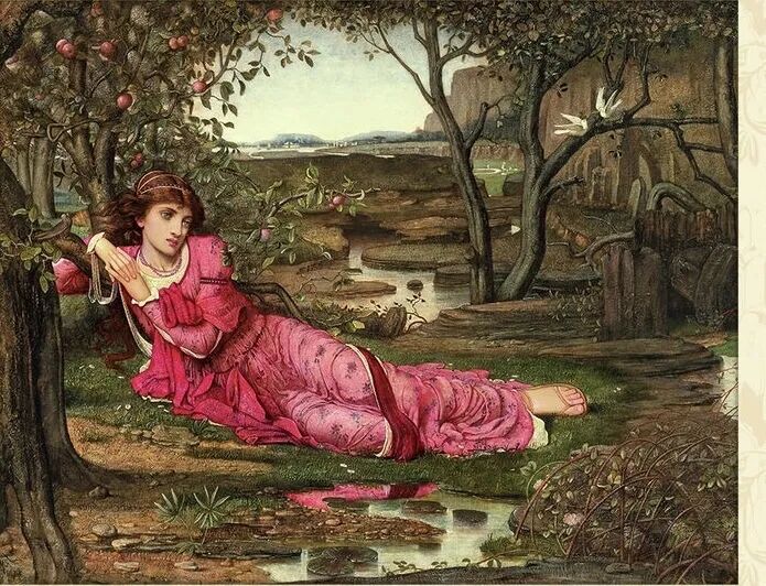 1876年年英国画家斯特拉德威克唯创作了《无言的歌》,画面上一位目光如一汪清泉的窈窕女性依靠在苹果树底下,周围的鸟鸣声似乎在无言地倾诉着女孩内心的声音!
