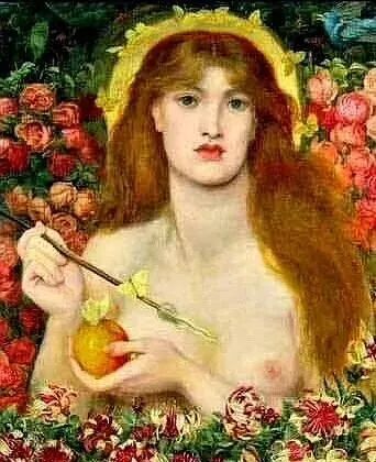 这幅画取名《沃提考迪亚的维纳斯》,是拉斐尔前派画家但丁·加布里埃·罗塞蒂1868年创作的布面油画,现藏于伯恩茅斯科特美术博物馆!