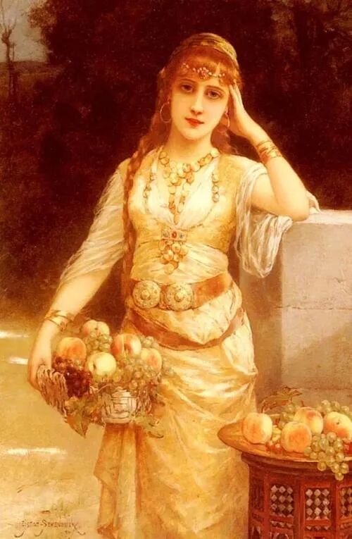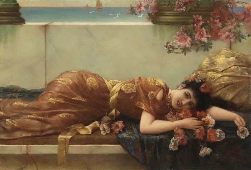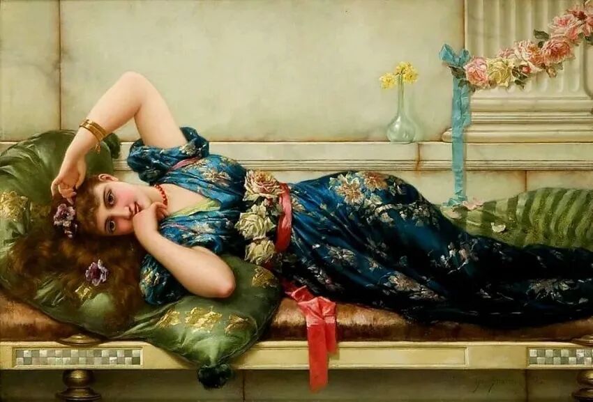 这位画家特别擅长创作19世纪流行的东方主题绘画,他画笔下的女性,个个沉鱼落雁闭月羞花,而且又具有女性的一切美好品德,高雅纯净时尚,总之一切赞誉的词语用在这些女性身上都不为过!