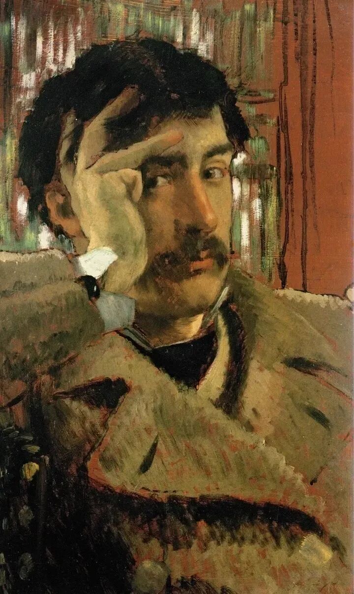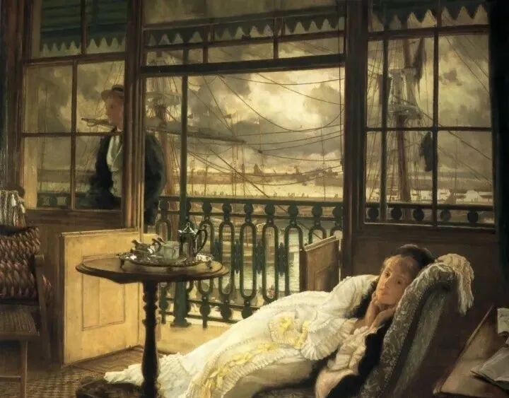 詹姆斯.提索,法国画家,上面这张自画像个人觉得很帅,那手指扶着着额头的姿势,眼神向我们一瞥的神情,感觉栩栩如生,如同画家就站在这里看着我们!