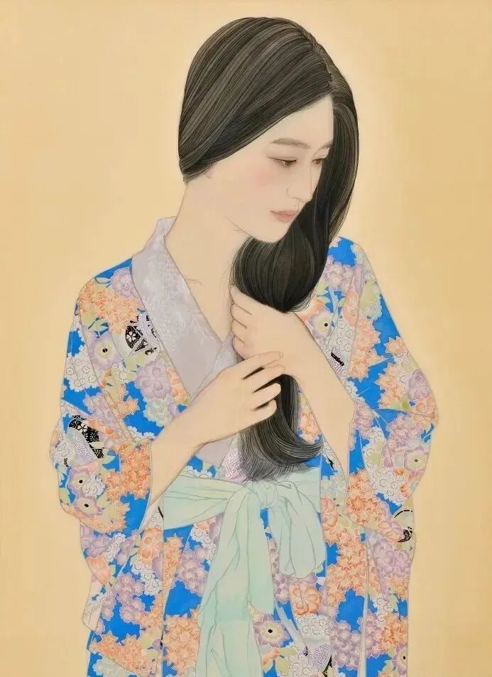 这位日本画家的名字叫京都絵美,出生于1981年,2007年从東京艺术大学美术学部开始学习日本画专攻工笔画!