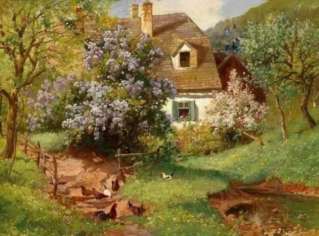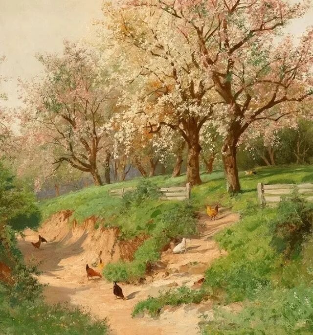 想来这位奥地利画家,也是喜欢这种与世无争,与草木花鸟,与大自然融为一体的感觉吧!所以我们徜徉在他的画作中,内心深处同样闻到了大自然的气息,因而也会流连忘返……