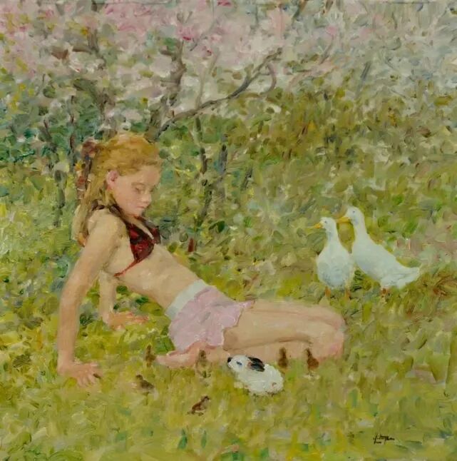 大卫 · 赫廷格,美国印象现实主义画家。他8岁时就开始绘画了, 13 岁时,当地艺术家迈克·斯宾塞非常欣赏他的才华,送给了他一套油画颜料!而他接受正式培训是在芝加哥的美国艺术学院!