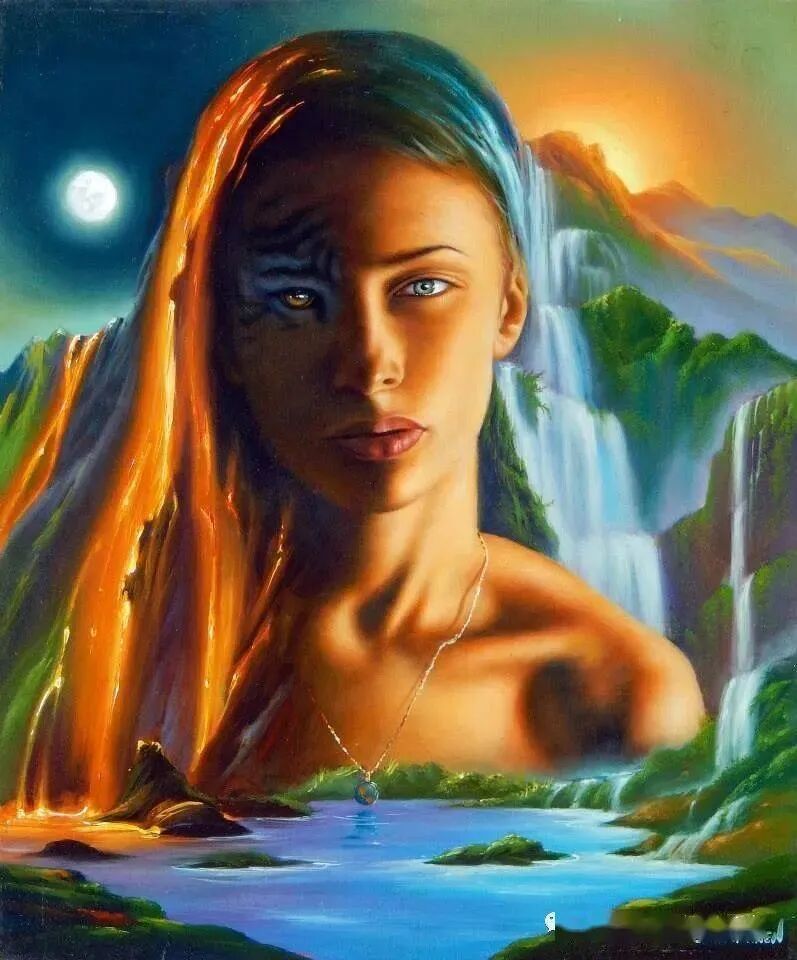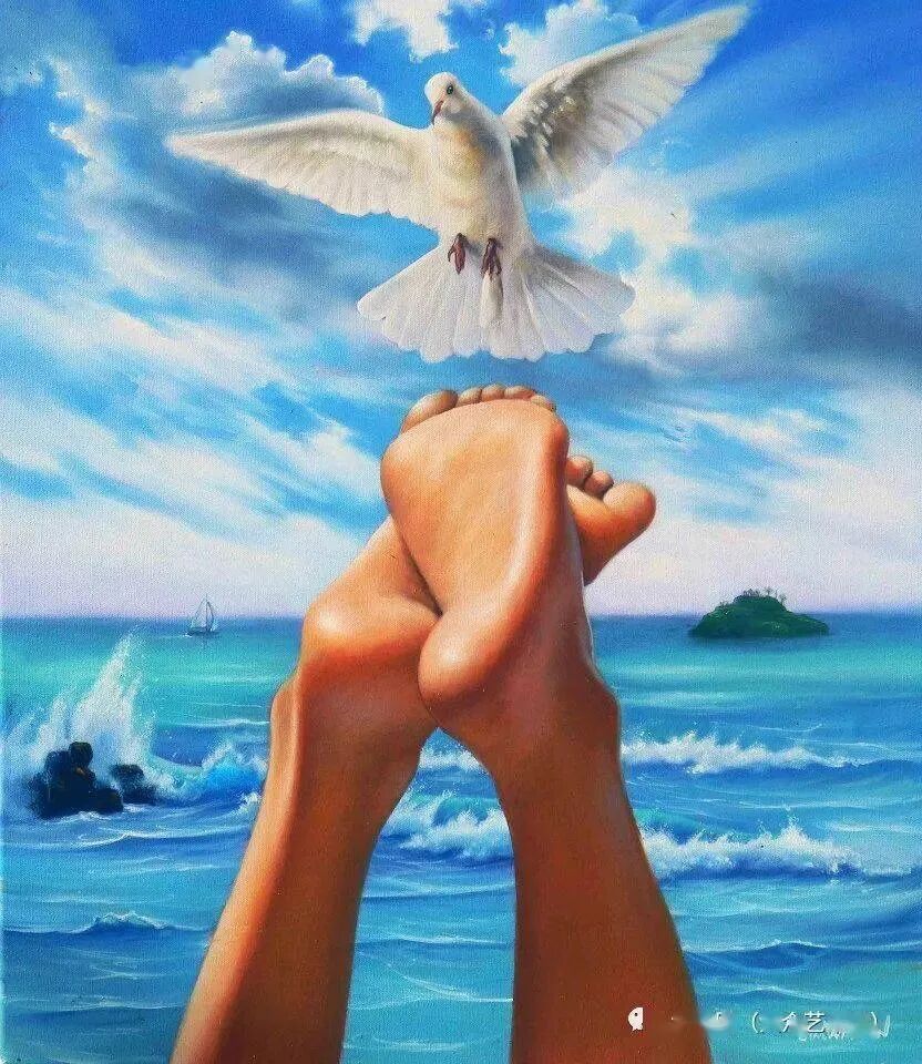无论是波涛汹涌蔚蓝色的大海,还是一望无际的碧水蓝天,或者是奔跑的飞禽走兽,或者是郁郁葱葱蓬勃生长的森林资源,画家把美丽的女郎和大自然天地万物和谐结合在一起,其实都在演绎同一个主题,那就是保护我们赖于生存的地球🌍,也就是保护生态环境,已经刻不容缓!