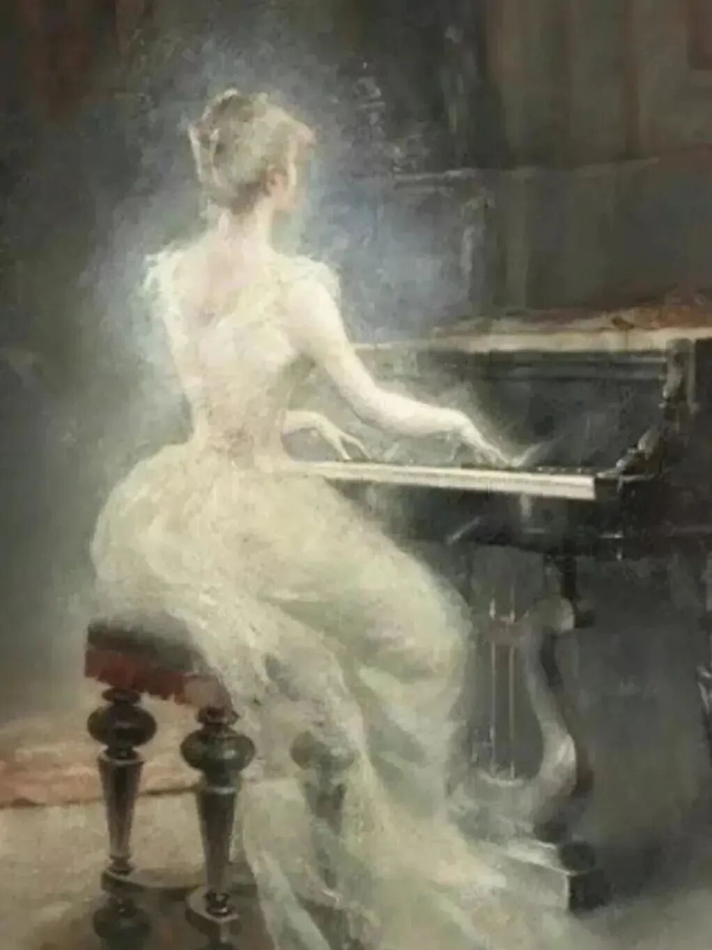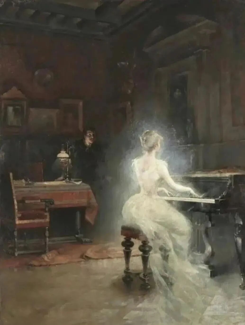 乔治1885年创作的油画作品《灵魂》,画面虚构了一位正在弹琴的优雅女子—上流社会女性形象!