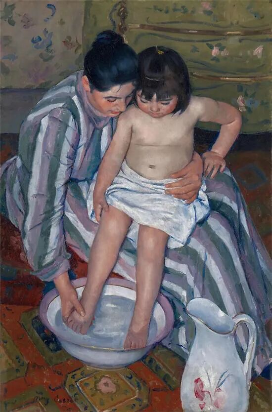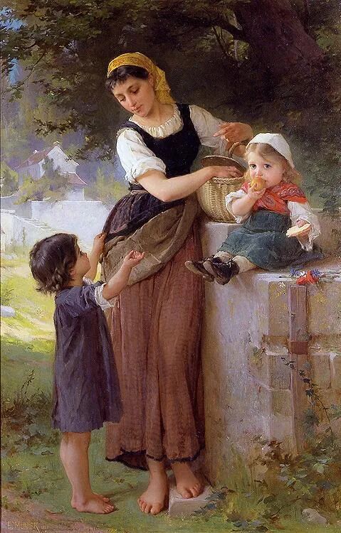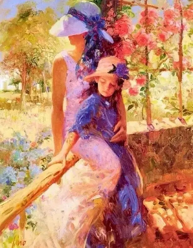 画面色调和谐,非常温馨,这是一幅充满爱的画作,画家用画笔把它定格,让它成为永恒,具有纪念意义,因为这正是他的妻子和儿女!