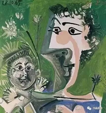 这幅《母与子》也是毕加索所创作,画面的造型设计更加具有动感魅力,顽皮的孩子,以及母亲生气的神情,画家有创意地运用了夸张变形的画面,使我瞬间读懂了“抱在手里怕摔了,含在嘴里怕化了”这十四个字的真正含义!