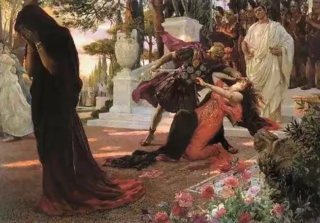 王子凯旋归来,美女们簇拥着,争相献媚,而站立在中间的王子在百花丛中,安之若素,也许他的心上人并不是眼前这些庸脂俗粉!