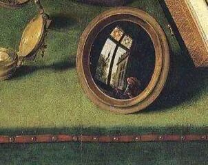 佛兰德斯画家昆廷·马苏斯创作的《银行家和他的妻子》,这幅画描绘的是放高利贷的男人正在家里用秤量货币,妻子无心看《圣经》,正在专注地看金币,凸面镜映照的是一个长方形的窗户、窗外的教堂树林,以及借高利贷的人。