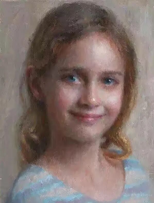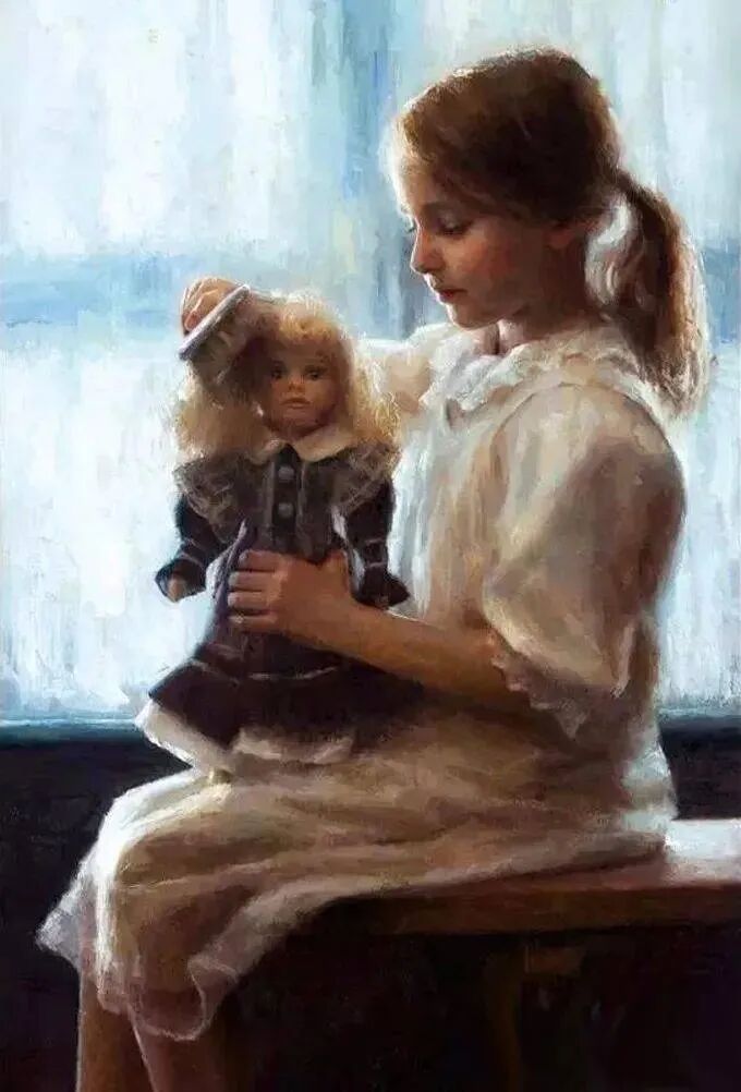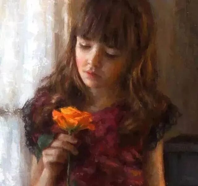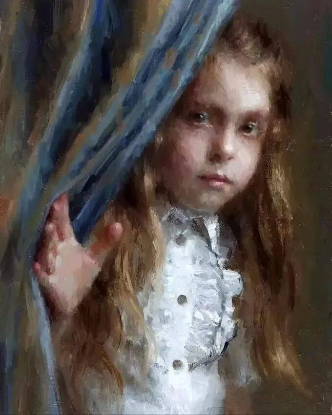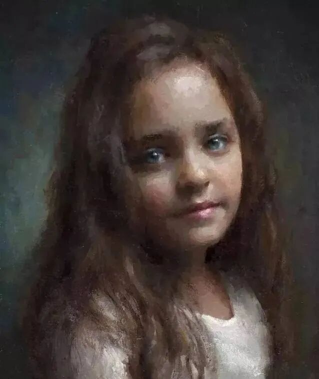 看小女孩的一双眼睛,似一池清水,那么明亮,画家的画技真是高超,把她刻画得如此传神!