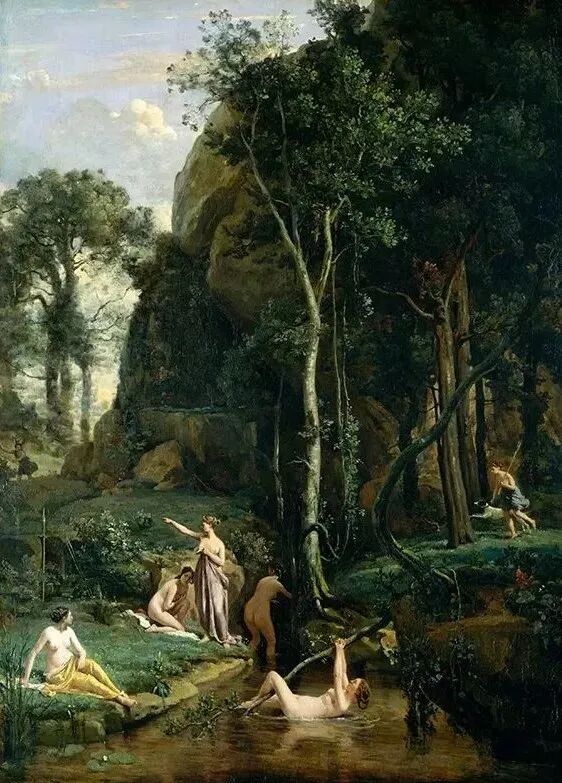 《林中沐浴的仙女》,树林是远离俗世的地方,她们可以无拘无束,在小溪流里尽情享受山泉水的洗礼!