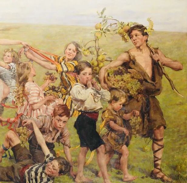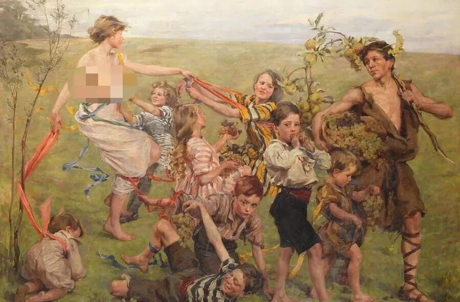 这幅画取名为:《夫妻俩和八个孩子幸福的田园生活》