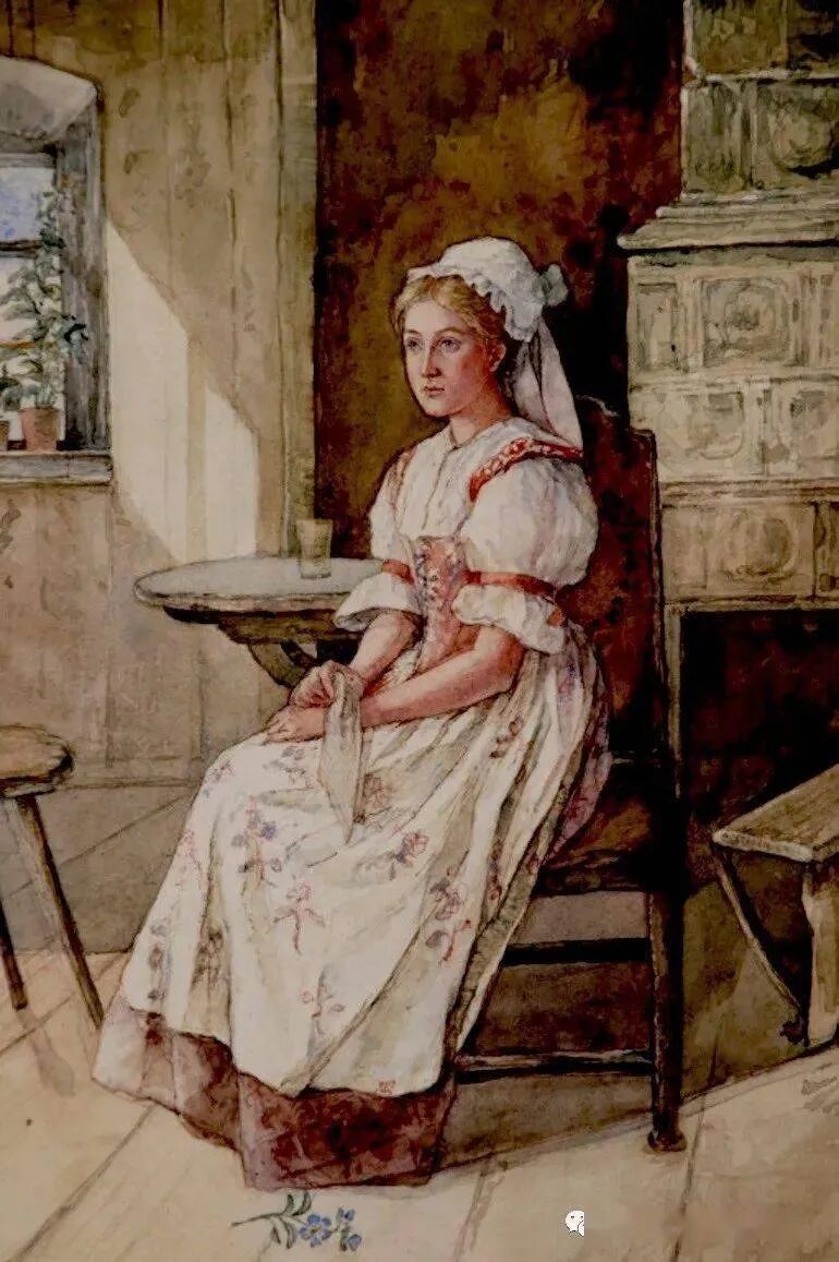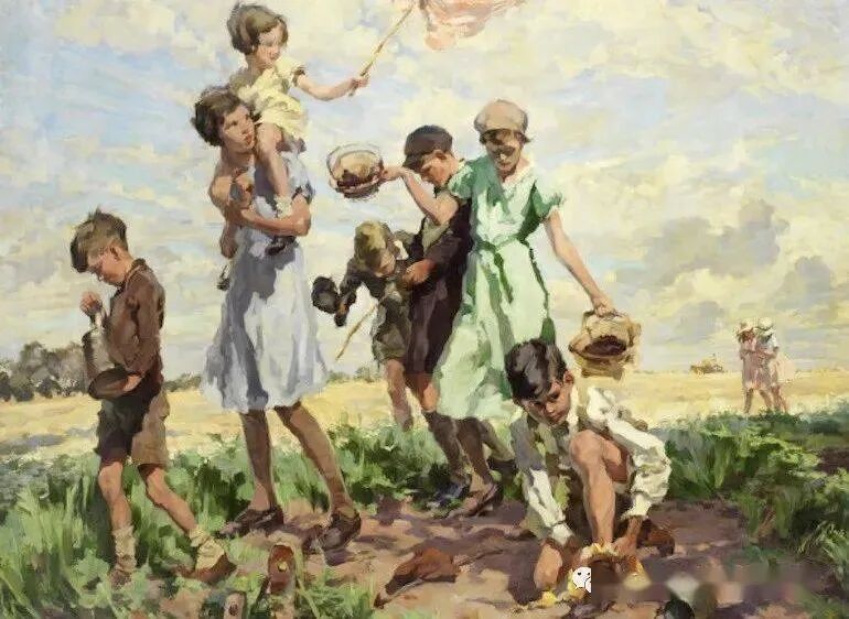 她笔下的人物形象虽然有战争的阴影存在,使画面显得压抑,但大部分还是描绘的非常温馨,包括那些女性,还有那些孩子们,画面总是被一种温馨包围着!
