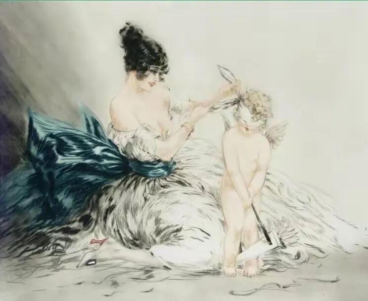 拥有如此曼妙身姿的巴黎女郎可以说是轻佻的,或者是放荡不羁的,但又是那么天真可爱自由浪漫!这是属于路易.艾卡托的洛可可艺术风格!