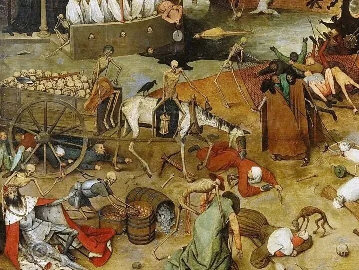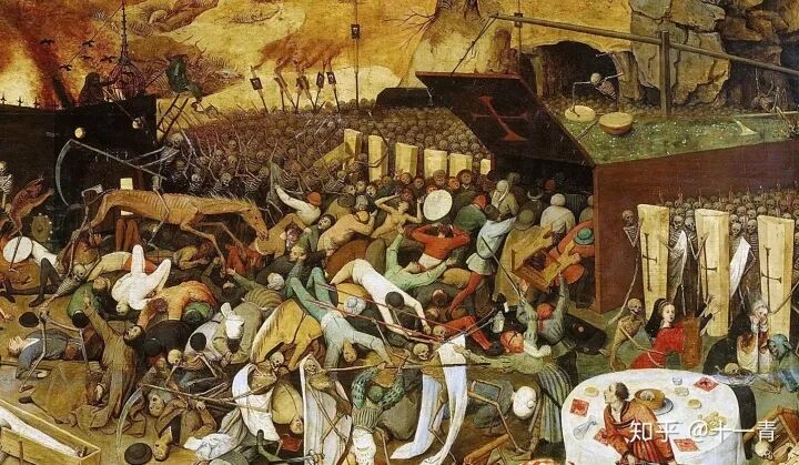 以上三幅是16世纪尼德兰最伟大的画家之一老彼得·勃鲁盖尔所画的《死亡的胜利》,都是以不同方式描绘了当时黑死病给人们生活带来的痛苦和煎熬!