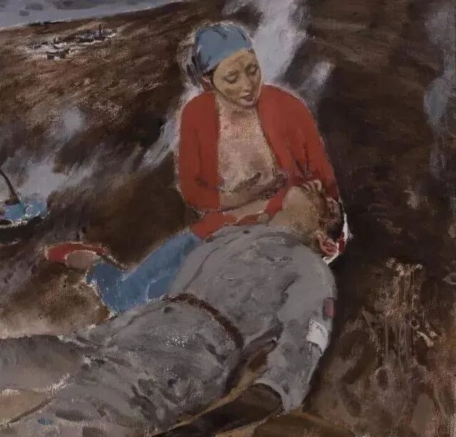 这就是是毛岱宗先生根据这个革命故事创作的油画《红嫂》,作品入选第六、八、九、十一届全国美展及第一、第二届中国油画展等展览并获大奖!画面展示了一名穿着红衣的妇女正在用乳汁救治这名受了重伤的八路军战士,这样的场景,看起来很像是母子,其实她们本来素不相识!