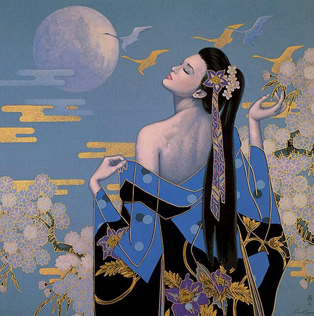 中秋佳节,嫦娥奔月,遥对故乡,飞鸽传书,感觉是画家利用手中的笔,在描绘思乡之情吧!这也是中华民族的传统节日,家家户户都会吃月饼,进行拜月的仪式!