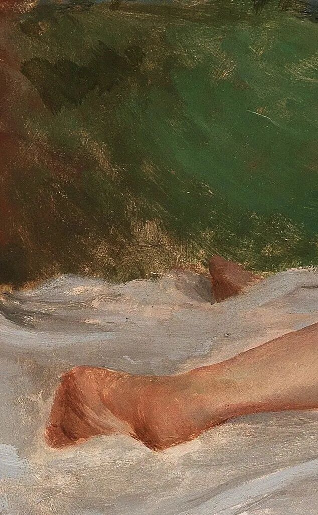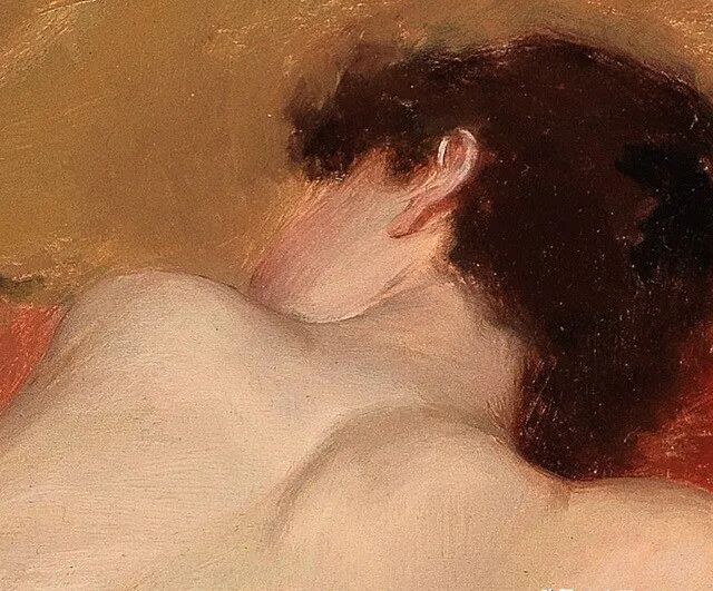这位画家似乎没有那么大的名气,留存的作品也并不多,最引人注目的作品就是这幅《后背的女模特》!图为局部