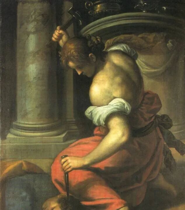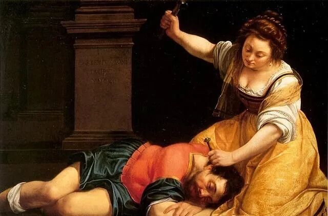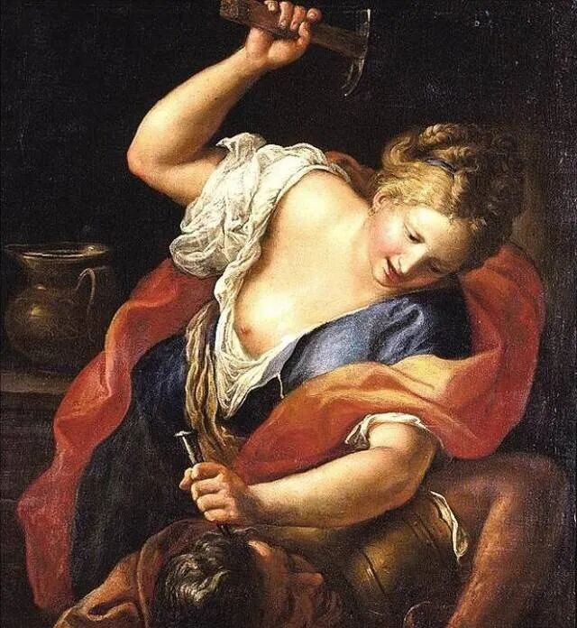 一千个艺术家就有一千个版本的《朱迪斯》,与《雅尔正在杀死斯塞拉》这幅画的背景应该都出自于《圣经》中的一个故事,大同小异,都是运用了美人计!自古英雄都难过美人关,然后依靠女人的美色与温柔,出其不意 攻其不备,杀死了十恶不赦的敌人!