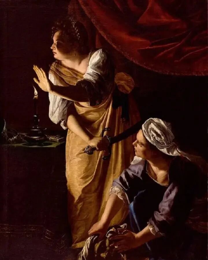 如女艺术家阿特米谢·简特莱斯基最经典的画作《朱迪斯斩杀赫罗弗尼斯》,讲述的是亚述帝国为征服天下,到处烧杀抢掠,无恶不作,军队所到之处,尸横遍野,而为首的统帅就是好战的赫罗弗尼斯!但到了犹太境内的要塞伯图里亚城时,遭到了激烈的反抗,久攻不下,于是赫罗弗尼斯把伯图里亚城围得水泄不通,并断绝了水路!如果继续围攻下去,那么犹太人就会被饿死!