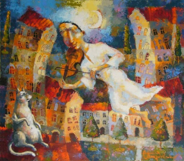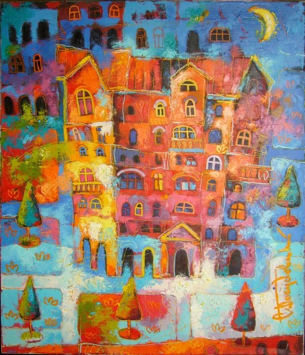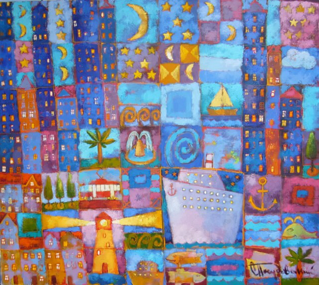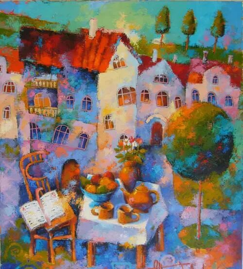 斯拉瓦1963年出生于乌克兰的哲列夫,1975-1979年在齐托米尔完成了艺术学校。1979-1983年就读于建筑学校,并以“优等生”毕业。原来是建筑系毕业的高材生,怪不得画作中各种古色古香的城堡设计得那么新颖别致!画家又在这些大大小小的建筑物里添加了形形色色的男男女女,她们的生活方式看起来舒适而美好,幸福而快乐!