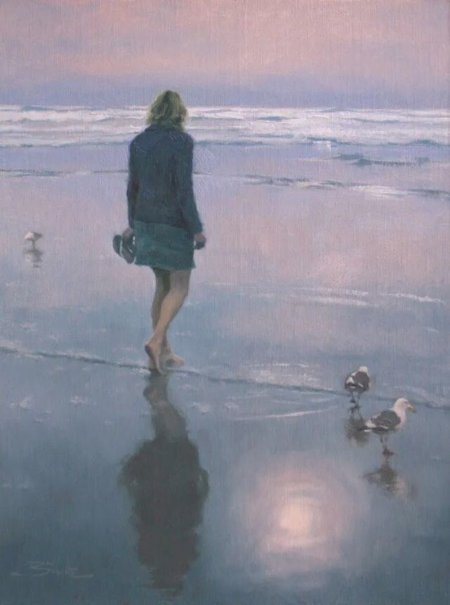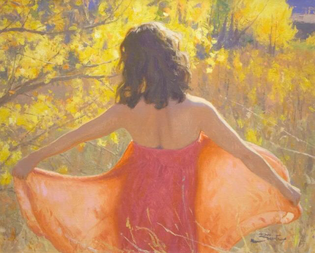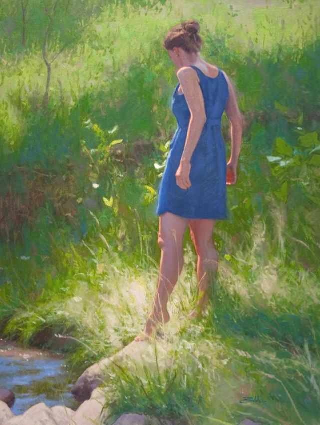 在这位美国艺术家的画布上,大自然的光色和人物形象互相融合恰到好处,人在景中游,画在景中留,意境优美,如诗如画,浪漫而抒情!