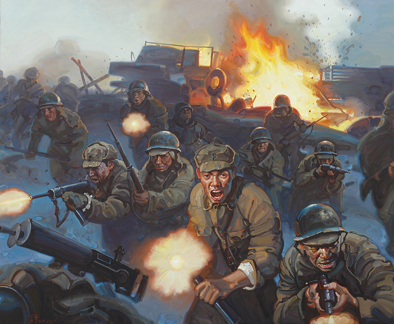 《夜战陈官庄》,硝烟弥漫的战场,战士们冒着敌人的炮火,在枪林弹雨中英雄杀敌,小编在此向他们致敬!这样的场面在和平年代,有警示教育意义!