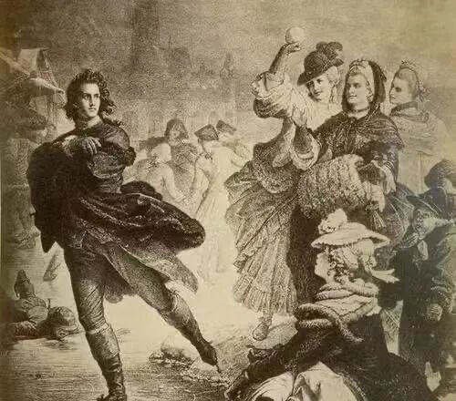 威廉·冯·考尔巴赫还创作了铜版画《冰场上的歌德》,画面上那位意气风发风流倜傥的青年就是歌德,他除了是一位天才诗人,还是一位狂热的溜冰爱好者,也是那个年代时尚的缔造者!