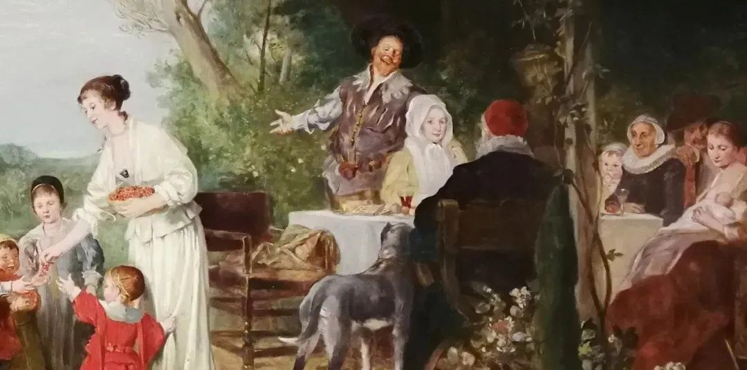 你看画中歌德的服饰是多么风度翩翩,他的燕尾服、他的溜冰鞋,是多么时尚,旁边是他的母亲和妹妹,还有爱慕和崇拜他的封·拉诺赫小姐!