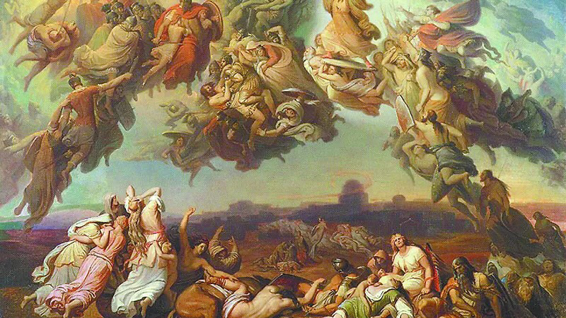 考尔巴赫1850年创作的《匈奴之战》,描绘了匈奴人在国王阿提拉率领下与罗马将军埃提乌斯和西哥特国王的联军在法国香槟沙隆地区进行的一场惨烈战斗,这场战斗最终以罗马大军取胜而告终!