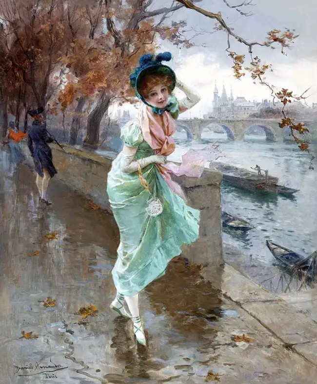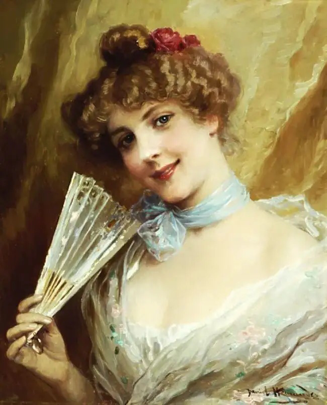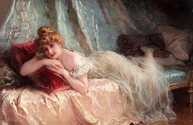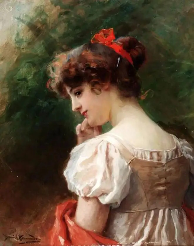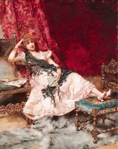 这位画家特别擅长描绘各种千姿百态的裙装,这幅画中若隐若现的纱裙,很好地勾勒出了女孩曼妙的身材,还有那粉色的如花似玉的肌肤,如一朵春日里盛开的桃花,惹人注目!