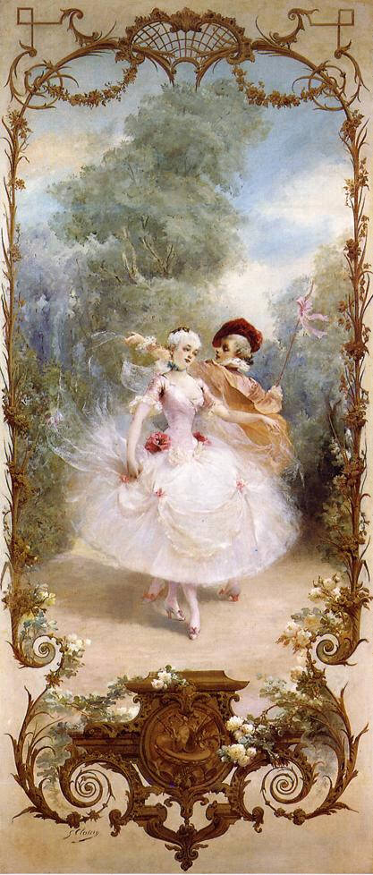 这位画家用大量的笔墨描绘了女性繁琐而又精美的裙装,很好地体现了女性曼妙柔软的身姿!不过这样一套裙装,需要多少费用啊!不用说布料,光做工,那也要花费很多时间才能完成吧!